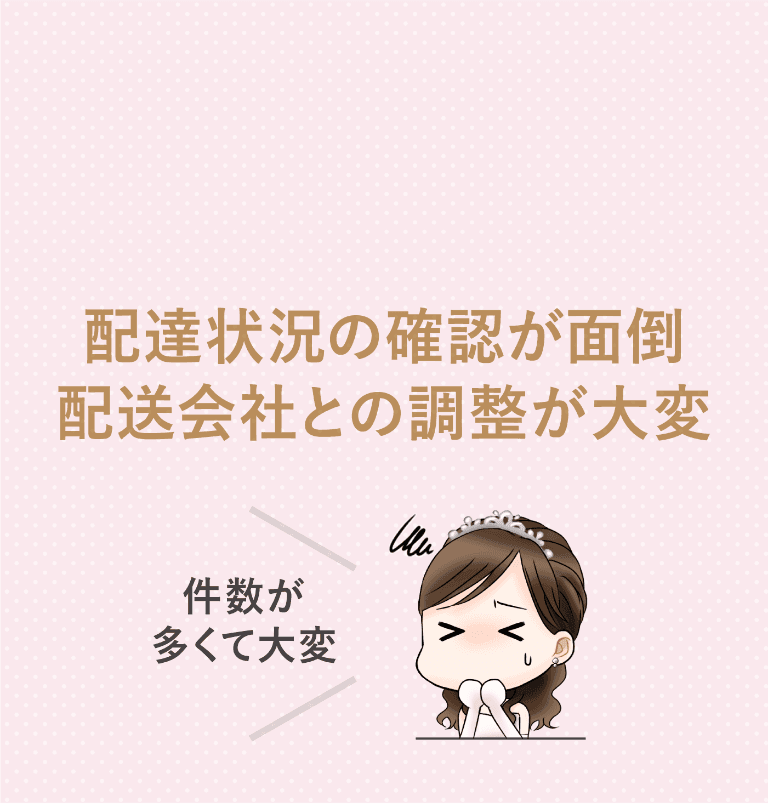 また、事前に配送会社との調整をするのも件数が多いため新郎・新婦様には大変な作業です。