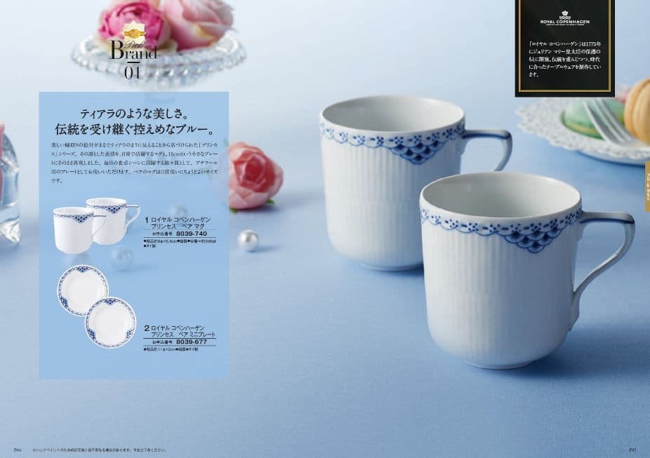 <マイセン>ホワイトタンブラー、<プラダ>キャンディローオーデトワレ、<ロイヤルコペンハーゲン>プリンセスペアマグ、<ロクシタン>フラワーハンドクリームコレクション、<マリアージュフレール>紅茶2銘柄の贈り物、<ピエール・カルダン>トートバッグ