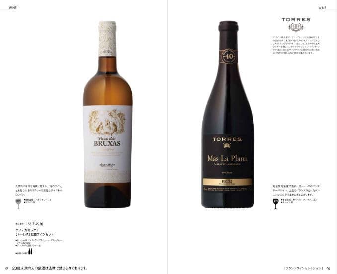 <北海道:男山>純米大吟醸、<青森県:桃川>大吟醸純米桃川王松、<宮城県:仙台伊達家御用達(勝山)>純米大吟醸「暁」、<秋田県:阿櫻酒造>純米大吟醸原酒、<秋田県:阿櫻酒造>純米大吟醸原酒、<埼玉県:神亀酒造>ひこ孫純米大吟醸、<鹿児島県:有村酒造>島有泉奄美黒糖焼酎、<岡山県:宮下酒造>本格米焼酎シェリー樽貯蔵「初代亀蔵」、<岡山県:室町酒造>こだわりリキュール詰め合わせ、<山梨県:中央葡萄酒>グレイスセット、<フランス:ボルドー・ブルゴーニュ>紅白ワインセット、<フランス:マンサール>シャンパーニュRM紅白セット、<イタリア>バローロ、バルバレスコ2本飲み比べセット、<フランス>ラフォンタンナポレオン、<フランス>ラフォンタンXO