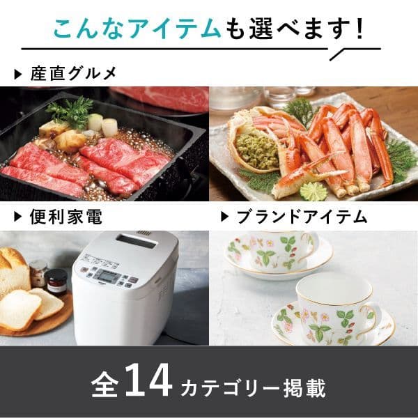 ブランドアイテム、ファッションアイテムなど主賓や特別なゲスト様にご満足いただく商品を中心にセレクトしています。また高級和牛や海産品などの産地直送グルメが掲載されているのも特徴です。