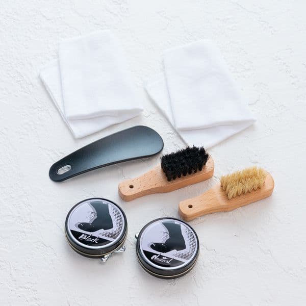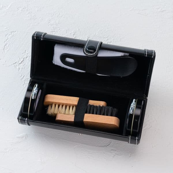 スマートな収納と実用性を兼ね備えた靴磨きセット。