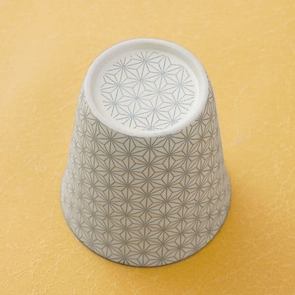 鎌倉時代から続く伝統の図柄である「麻の葉文様」で凛々しさを表現したロックカップ。着物や産着、家紋、神紋など、さまざまなものに描かれる麻の葉文様には、魔除けや厄除けの意味があるといわれています。内側は金属のようにみえますが、特殊加工をしており電子レンジの使用も可能です。
