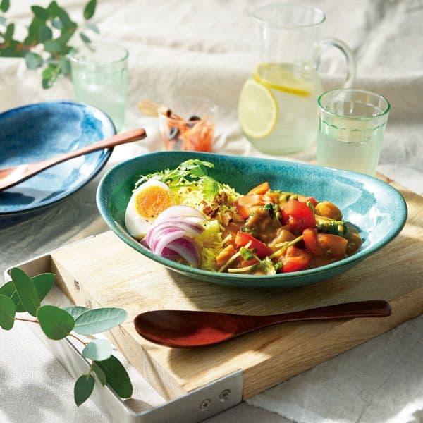 美濃焼のカレー皿セット。コロンとした形が可愛く、手になじみやすいお皿です。色合いが鮮やかで食卓を華やかに彩ります。