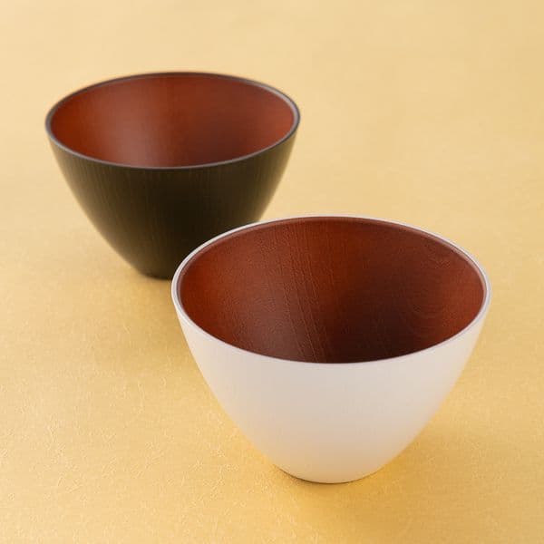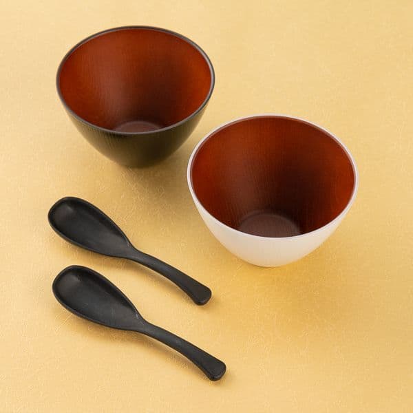 和モダンをテーマにした落ち着きあるマルチボウル。外側と内側の色が異なるのがアクセントの一つになっていておしゃれさを上乗せします。レンゲもセットになっています。