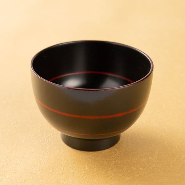 小ぶりな椀汁揃。落ち着いた色合いで普段使いからおもてなしまで幅広く使っていただけます。赤いラインがアクセントになっています。