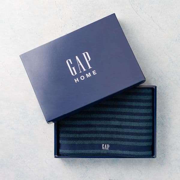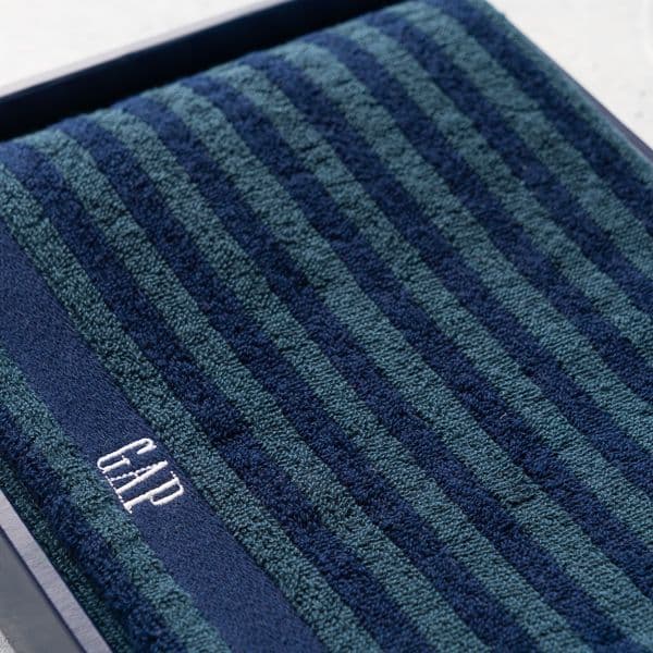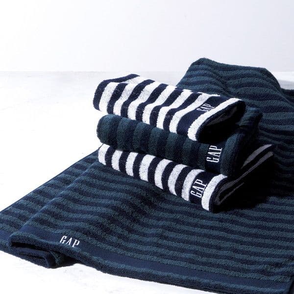 衣料品でおなじみのGAPのバスタオル。おしゃれなボーダー柄がスタイリッシュでアウトドアやスポーツのあとなどいろいろなシーンで使っていただけます。