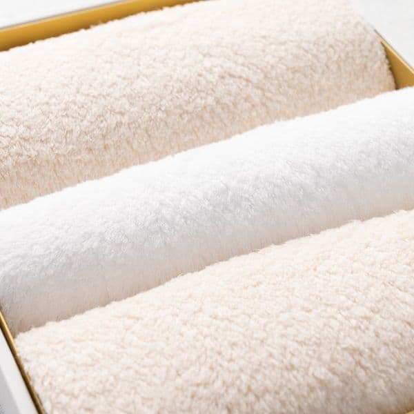 史上最強の柔らかさと言われるほど柔らかいマシュマロタッチのフェイスタオル2枚、ゲストタオル1枚のセット。希少な超長繊維綿の中でも特に上質なものだけを使って作られたタオルです。軽さと柔らかさがあり、吸水性、ふき取り性に優れています。