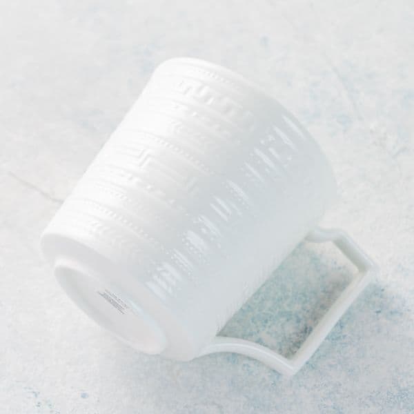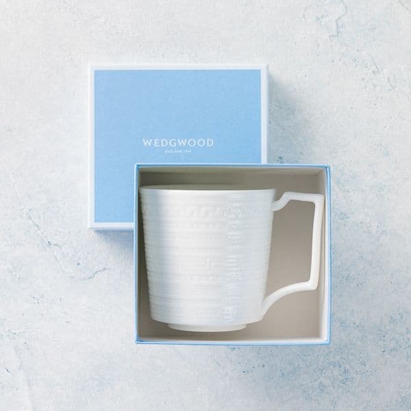 テーブルウェアの最高峰ウエッジウッドのマグカップです。幾何学エンボスモチーフで乳白色一色の中にも洗練されたセンスを感じるデザインになっています。ブライダルのギフトとして最適です。