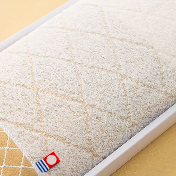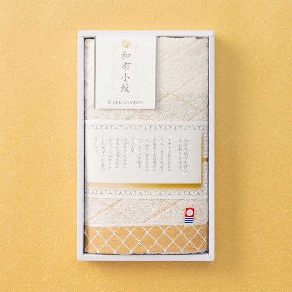 江戸時代に発展した日本の伝統的テキスタイルデザインの小紋柄をさりげなくあしらったモダンで縁起のいい今治タオルは、年代や性別を問わず人気があります。