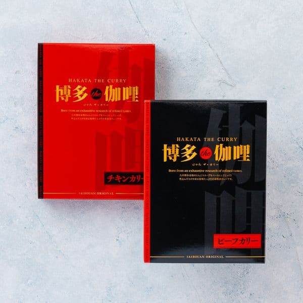 博多のとんこつラーメンの豚骨スープをベースにして作られた博多カレー。豚骨スープを長時間煮込んでベースを作り、ビーフとチキン2種類のカレーに仕上げました。