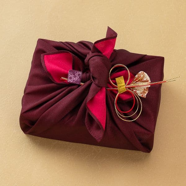 パッケージは「結ぶ」ことから縁起がよく結婚式にふさわしい風呂敷包み。