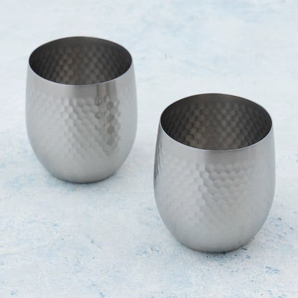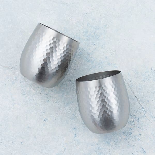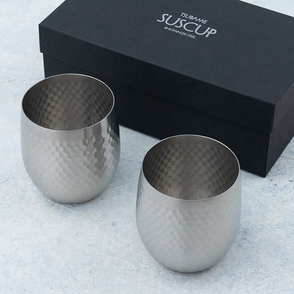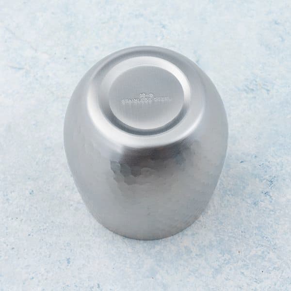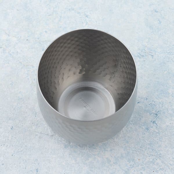 18-8ステンレスに鎚目模様を入れ、艶消し仕上げとした落ち着いたモダンデザインのカップです