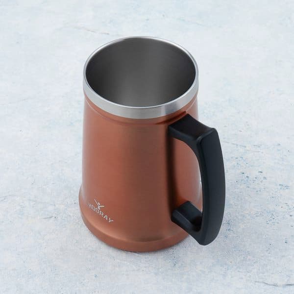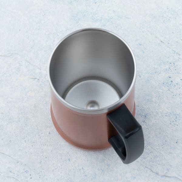 安定感のある末広がりのカップです。持ちやすい大型ハンドルを採用しており、温かい飲み物も冷たい飲み物も温度を長時間キープしてくれます。