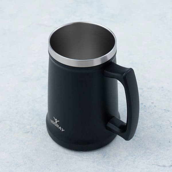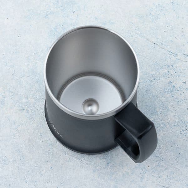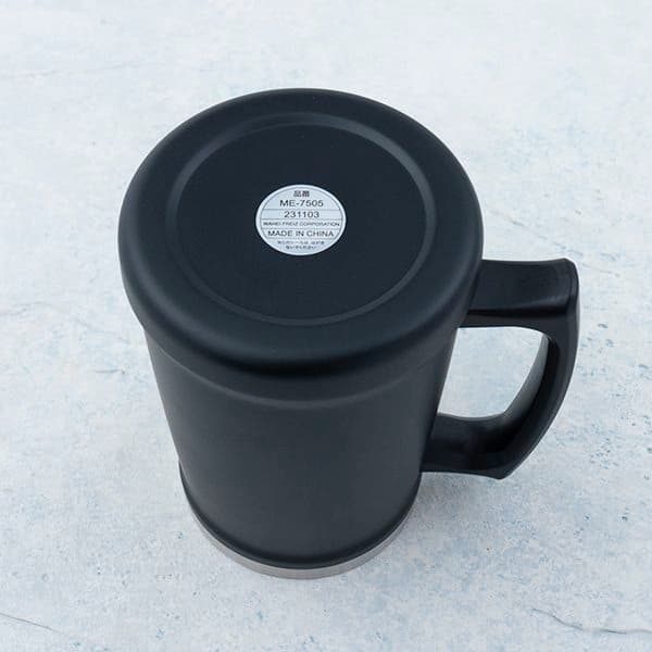 安定感のある末広がりのカップです。持ちやすい大型ハンドルを採用しており、温かい飲み物も冷たい飲み物も温度を長時間キープしてくれます。