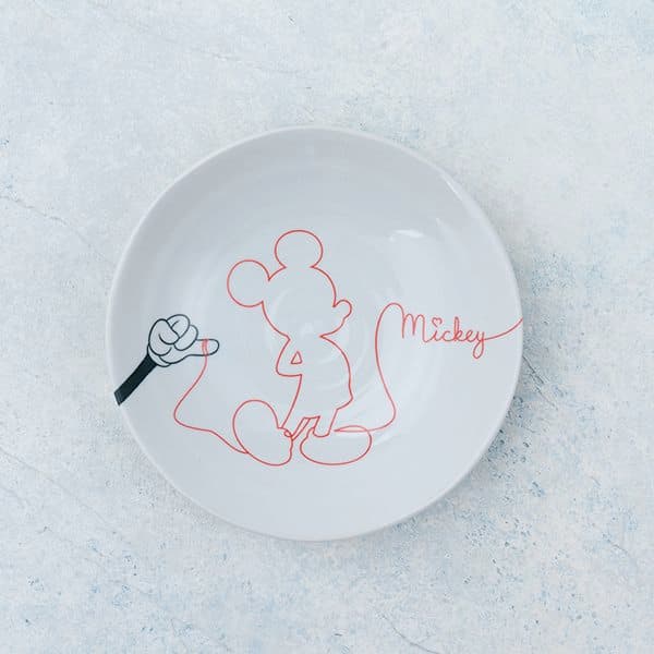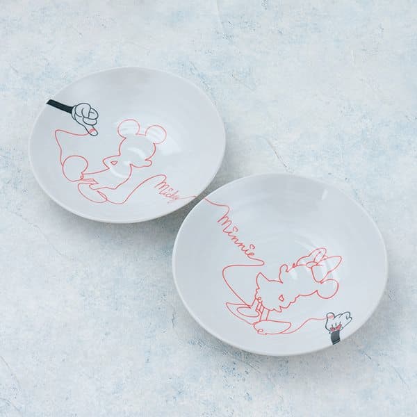 ミッキーマウスとミニーマウスの左手の薬指を運命の赤い糸で結んでいるデザインのカレー皿セットです。軽量で使いやすいお皿になっています。