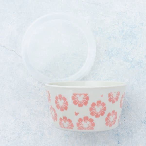 パッと見は上品な花柄で、キッチンや食卓に馴染みやすく、幅広い年代に好まれるデザイン。ふたつのサイズに、電子レンジと食洗機対応の磁器製で、実用性が高く日常使いにぴったりのアイテムです。
