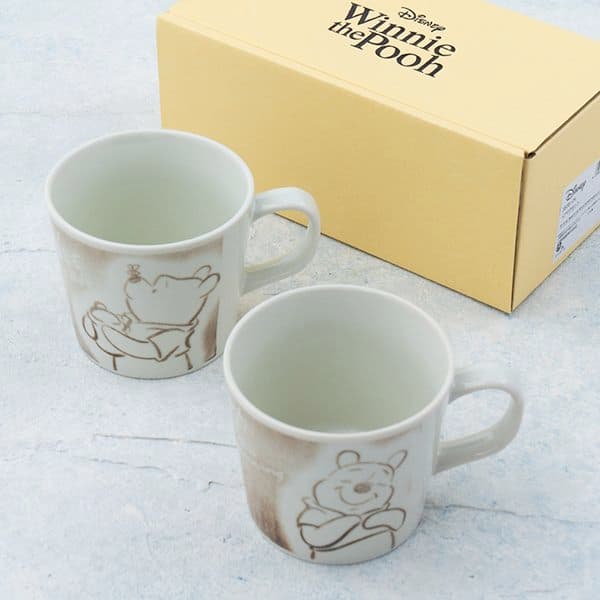 筆で描いたようなくまのプーさんが心を和ませてくれるペアマグセットです。リラックスした優しい気持ちにさせてくれます。