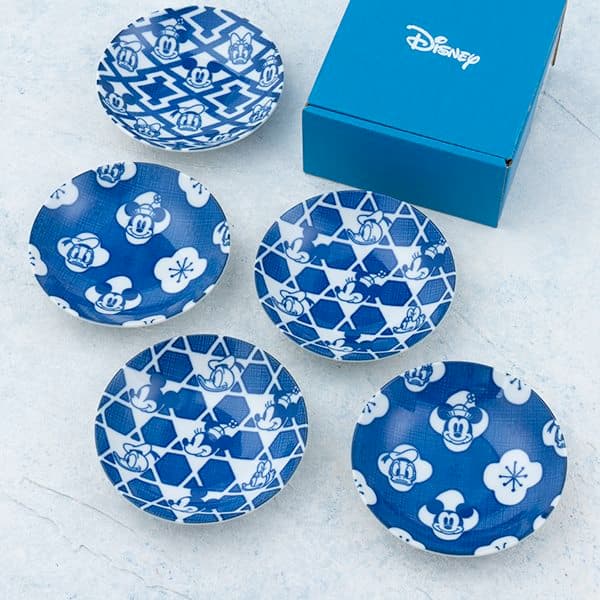 ミッキーと仲間たちのフェイスアートがにほんの伝統的な和柄と組み合わされ、素敵な和モダンのデザインが完成!落ち着いた色の食器で、食卓を小粋に彩る和食器シリーズです。こちらの小皿揃は前菜やお醤油などを入れることができる万能食器です。