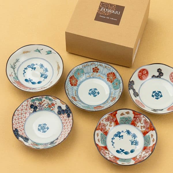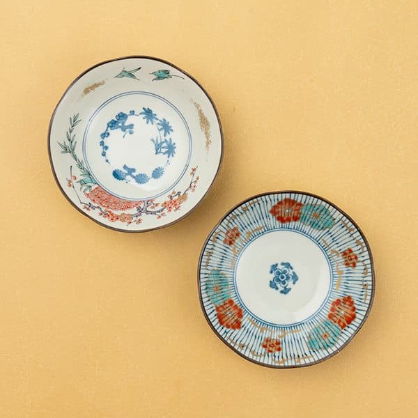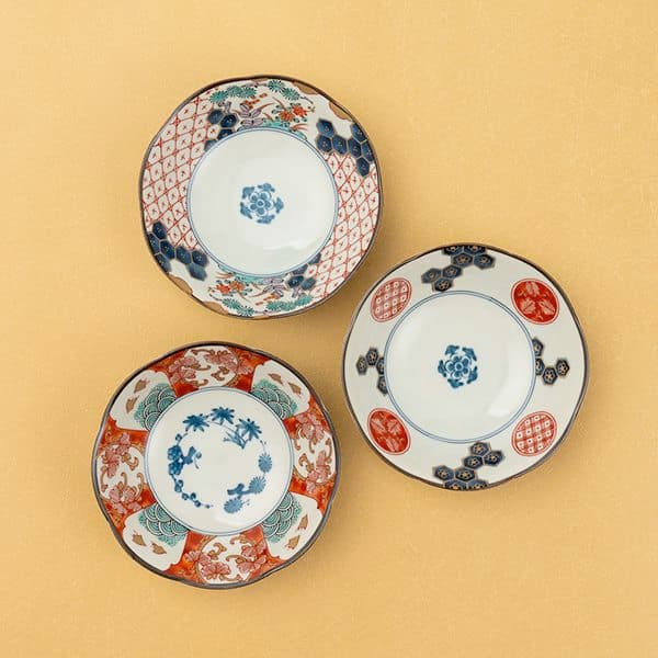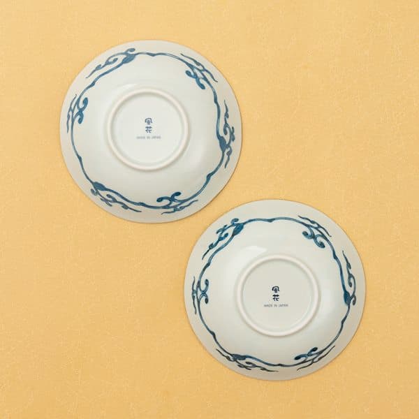 古伊万里の絵柄が上品で美しいお皿のセットです。日常使いしやすいサイズで使い勝手がよく、食卓を華やかに演出してくれます。裏側にも唐草模様が施されています。