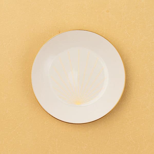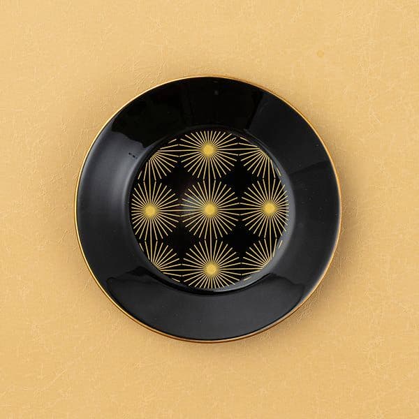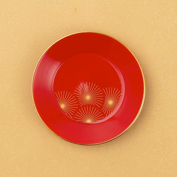 花火や日の出、和傘をあしらった高級感あるデザインのトリオプレートです。日本の風物詩である花火と広げると末広がりになるため、縁起がいいと言われている和傘のデザインを施したプレートは食卓をシックで上品に演出してくれます。