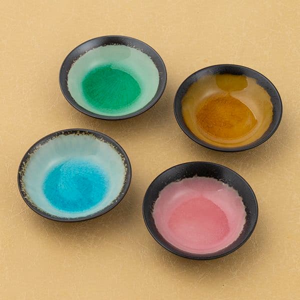 内側に華やかなガラス釉をあしらった4色の器は季節の趣を感じさせ、料理を引き立ててくれます。木箱入りで高級感もあり、贈り物にぴったりです。
