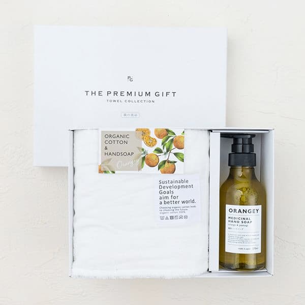 オーガニックのタオルと薬用ハンドソープのセットです。オレンジとハーブのさわやかな香りがするはハンドソープで手を洗ったら、ふわふわのタオルで拭き上げる最高のリラックスタイムをお楽しみください!