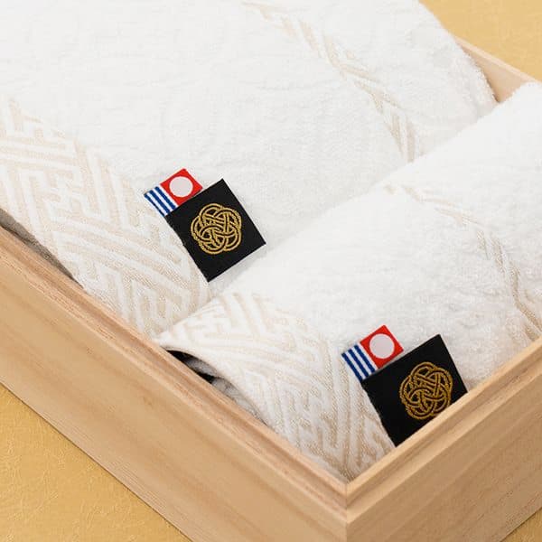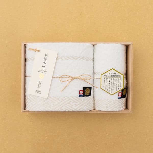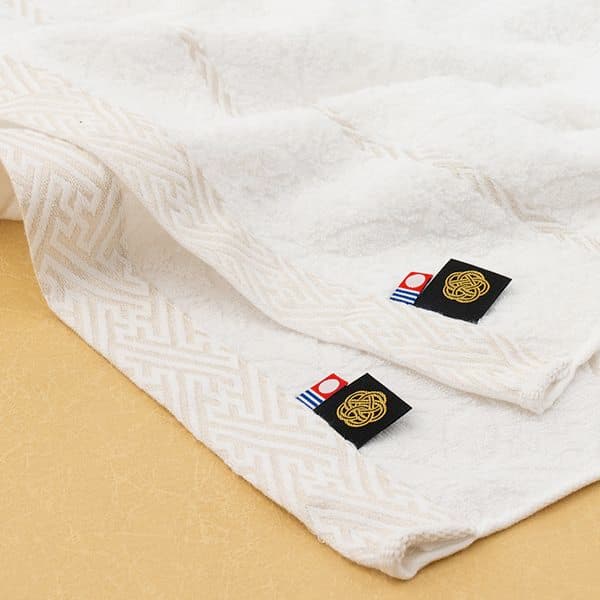 七宝柄をジャガードで表現した高級感溢れるバス・ハンドタオルセット。メイドインジャパンクオリティでふわふわ感が長持ちします。