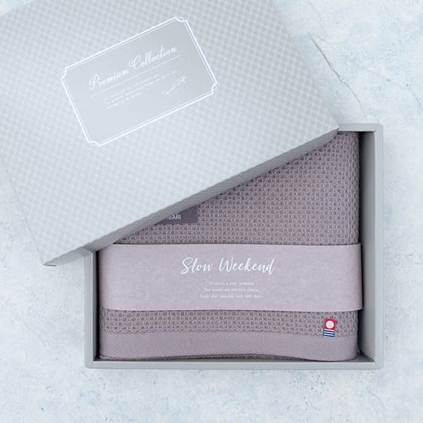グレーを基調としたシンプルなコンパクトバスタオル。ユニセックスなデザインで来客用や普段使いなど幅広くお使いいただけます。上質でリラックスできる素材感です。