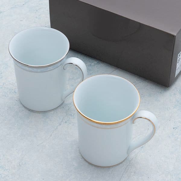 金と銀の色違いで、華やかさと品格を兼ね備えたフォーマルな逸品。結婚式の引き出物として、特別なシーンを華やかに彩る上質なマグセットです。