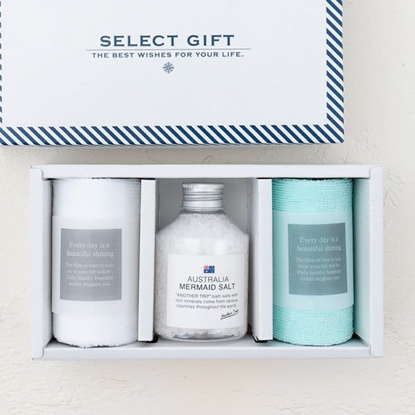 オーストラリア産の自然の恵みを活かしたバスソルトが、冷えた身体を芯から温め、心身を癒す贅沢なバスタイムをお届け。ゲストへの「感謝」と「お疲れ様」の気持ちが伝わる引き出物です。