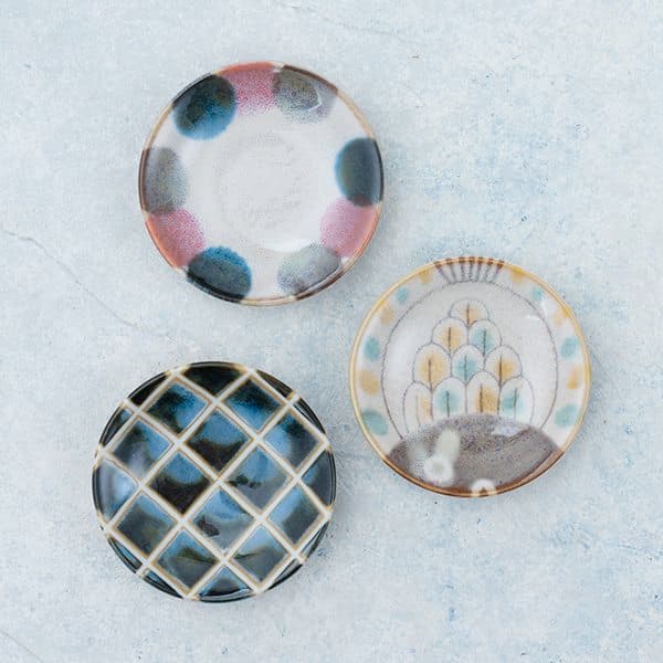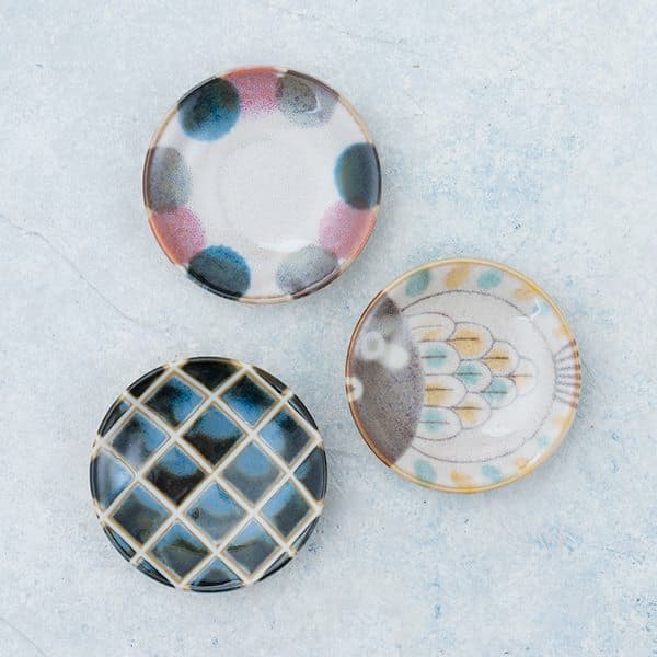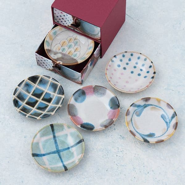 6種類のデザインで取り皿やお茶受け皿としてちょうど良いサイズ。磁器製で電子レンジや食器洗浄機にも対応し、毎日の食卓で活躍してくれます。