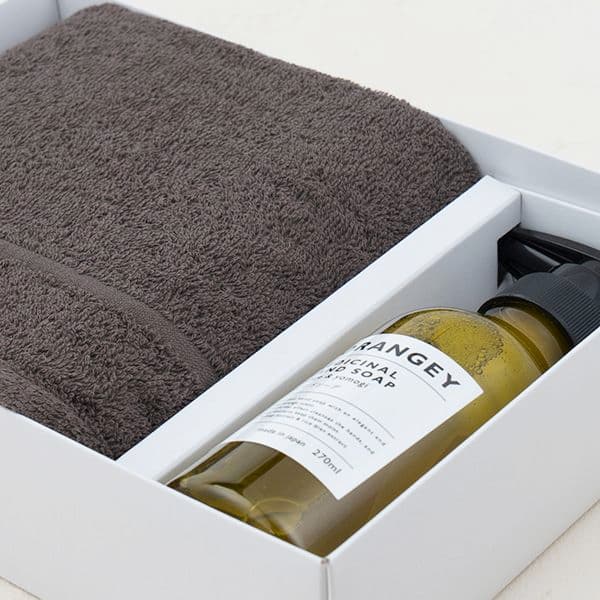 爽やかなオレンジとハーブが香るハンドソープは、洗浄と保湿を同時に叶え手肌を清潔に。タオルはオーガニックコットン100%、ふんわり柔らかい肌触りで吸水性も◎
