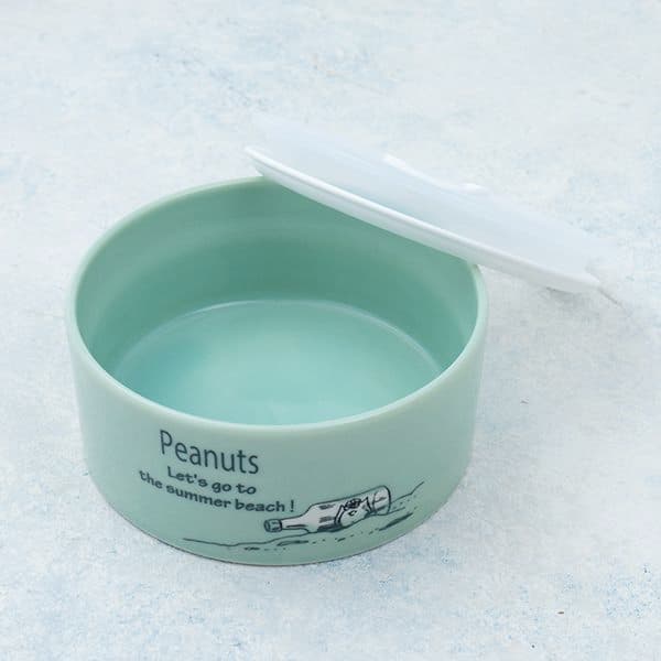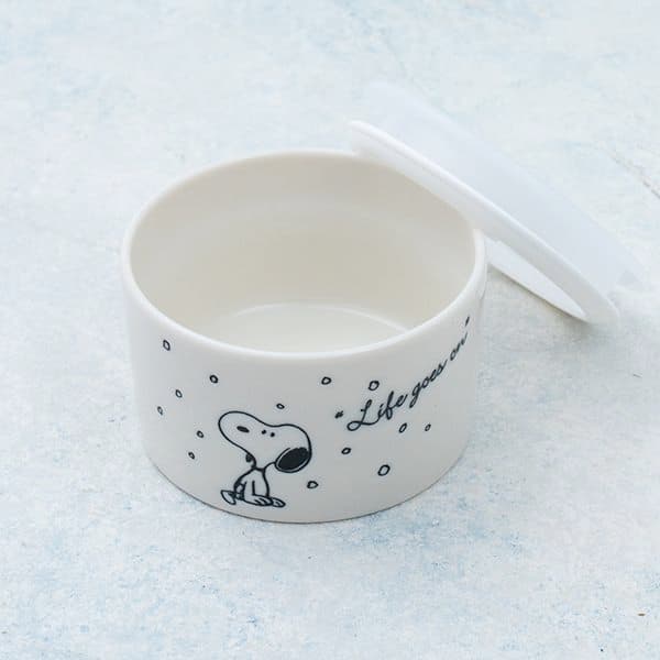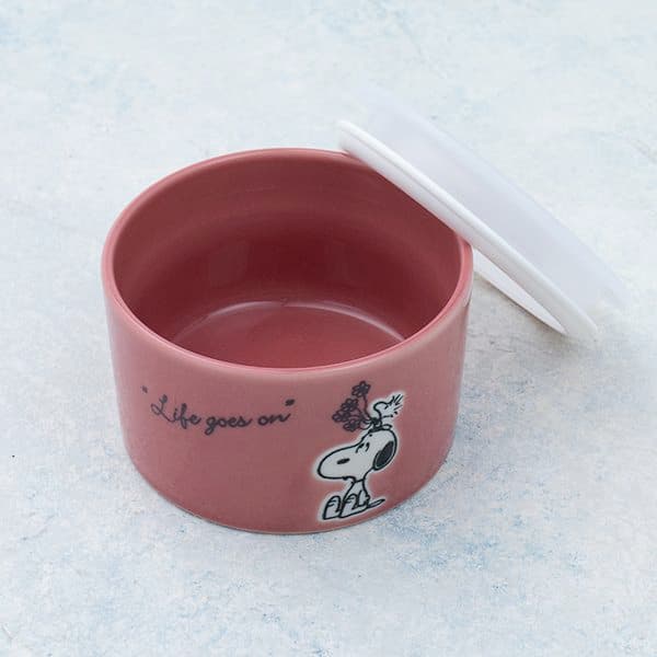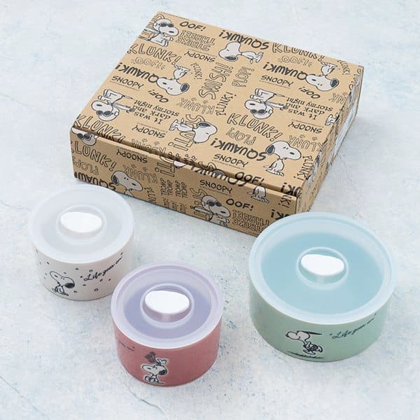 やさしいカラーにスヌーピーやウッドストックを描いた電子レンジ容器です。