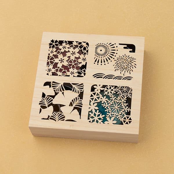 花火や桜、イチョウなどを描いており、開ける前から高級感を感じる引き出物です。