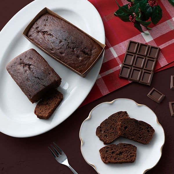食べごたえのあるガトーショコラのパウンドケーキ。しっとりとした食感で、ティータイムにぴったりです。
