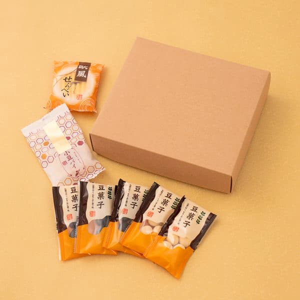小豆パイ、欧風せんべい、2種類の味でコーティングした豆菓子の詰め合わせです。お友達と、ご家族と楽しめるセットになっています。