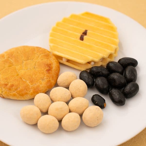 小豆パイ、欧風せんべい、豆菓子(竹炭×3・きなこ×2)
