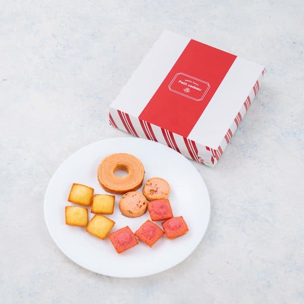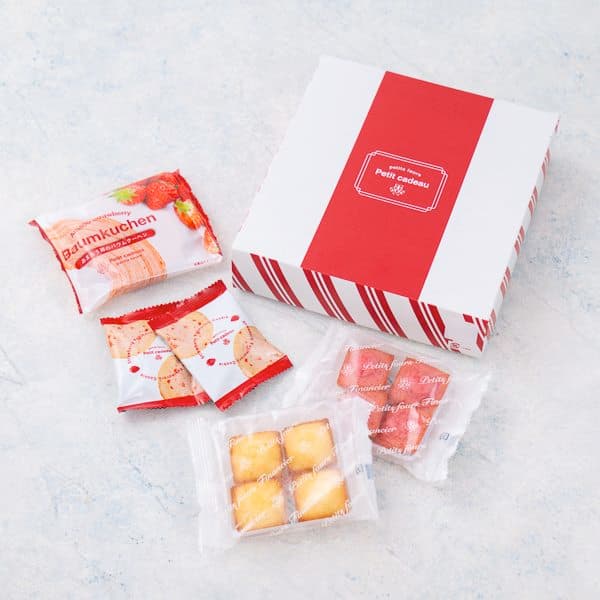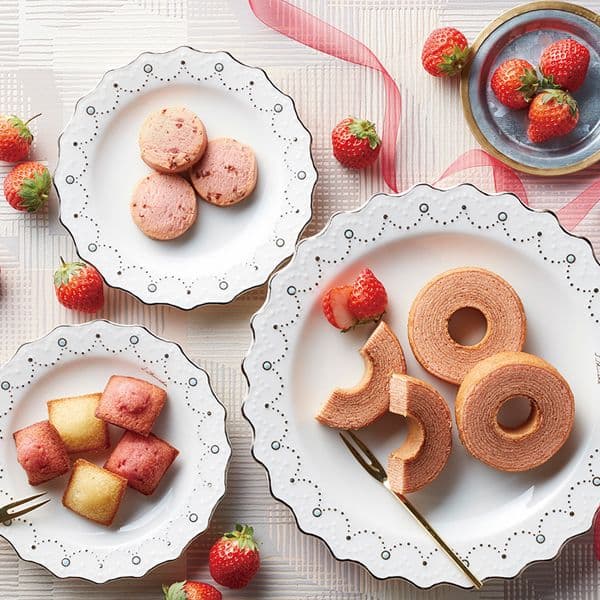 あまおう苺バウムクーヘン、プチフィナンシェ4個入(あまおう苺、プレーン)、焼きほろろクッキー(イチゴ)×2