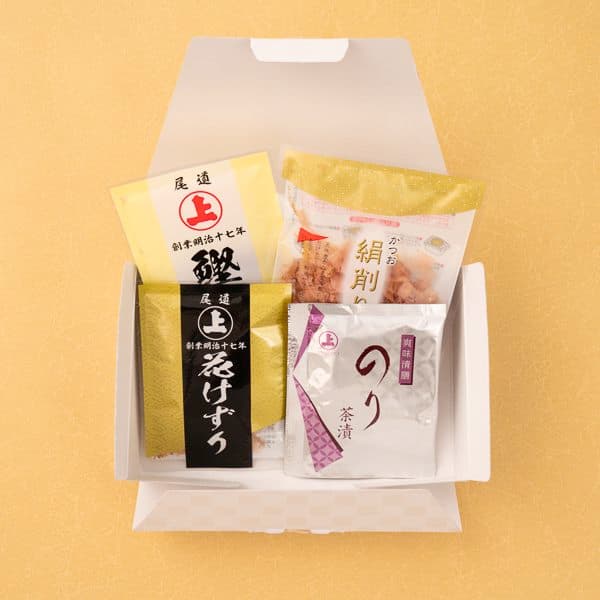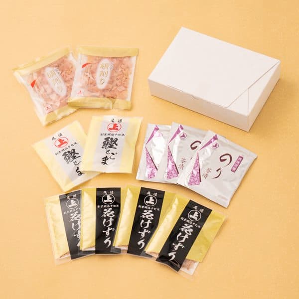かつお花削り2g×4、かつお絹削り3g×2、ソフトふりかけ鰹とごま5g×2、のり茶漬け5.8g×3