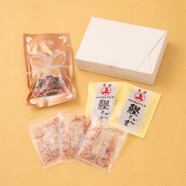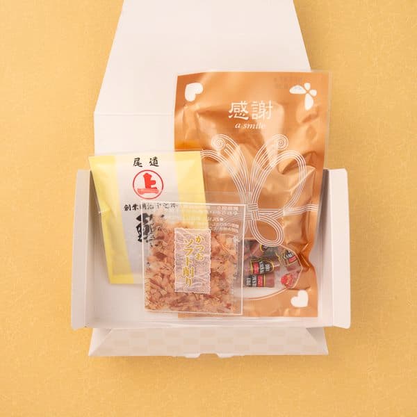 かつおソフト削り1.5g×3、ソフトふりかけ鰹とごま5g×2、ドライソーセージ47g×1
