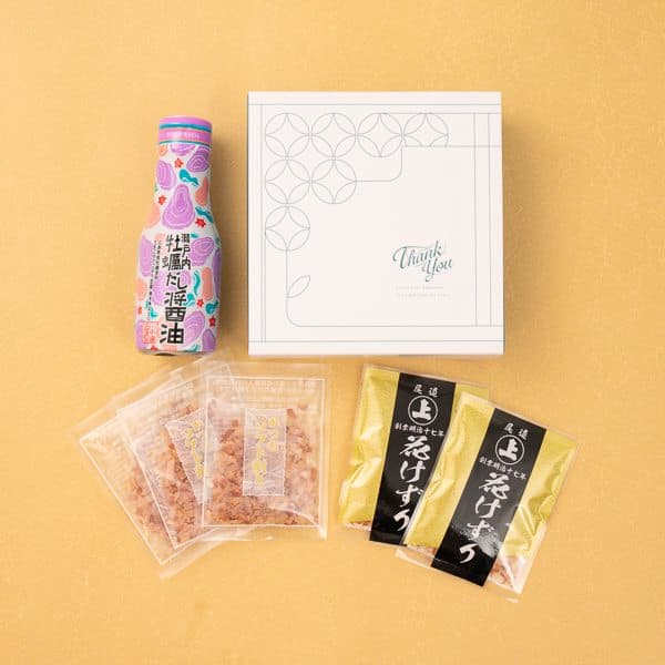 牡蠣だし醤油200ml×1、かつお花削り2g×2、かつおソフト削り1.5g×3