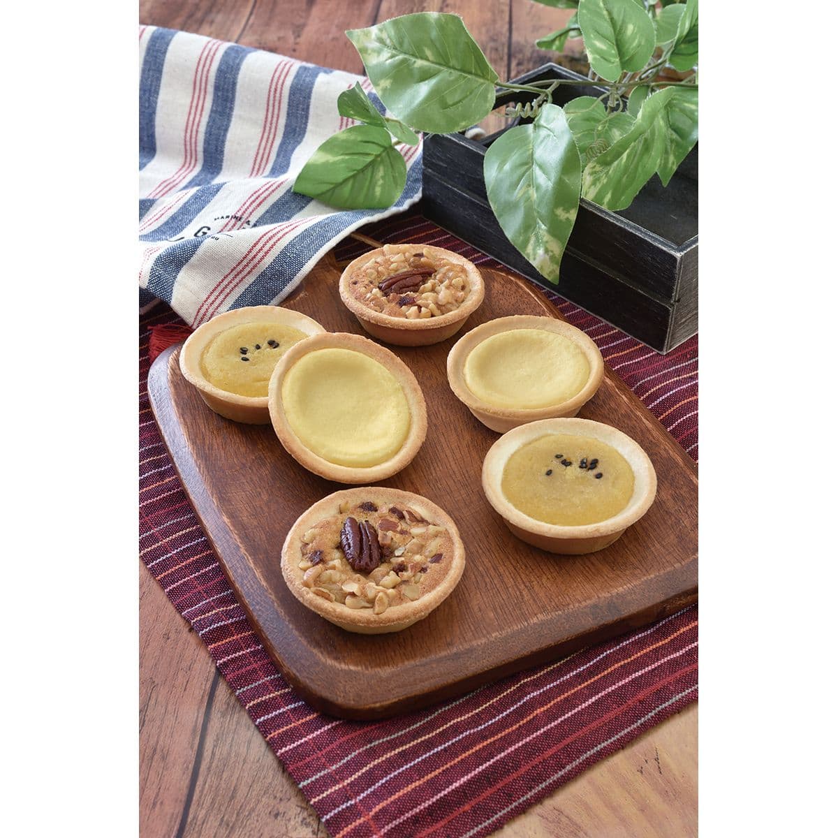 香ばしいタルトカップにナッツやスイートポテトを詰め込んだタルトセットです。甘すぎず、ちょうどいいサイズで、ティータイムのお供にぴったりです。