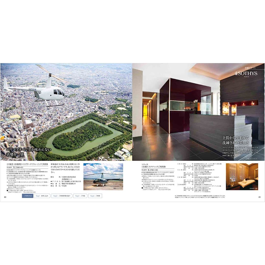宿泊、食事、体験はもちろんのこと、日本各地の名産伝統工芸品など、多数掲載されており、とても満足度の高いカタログとなっています。