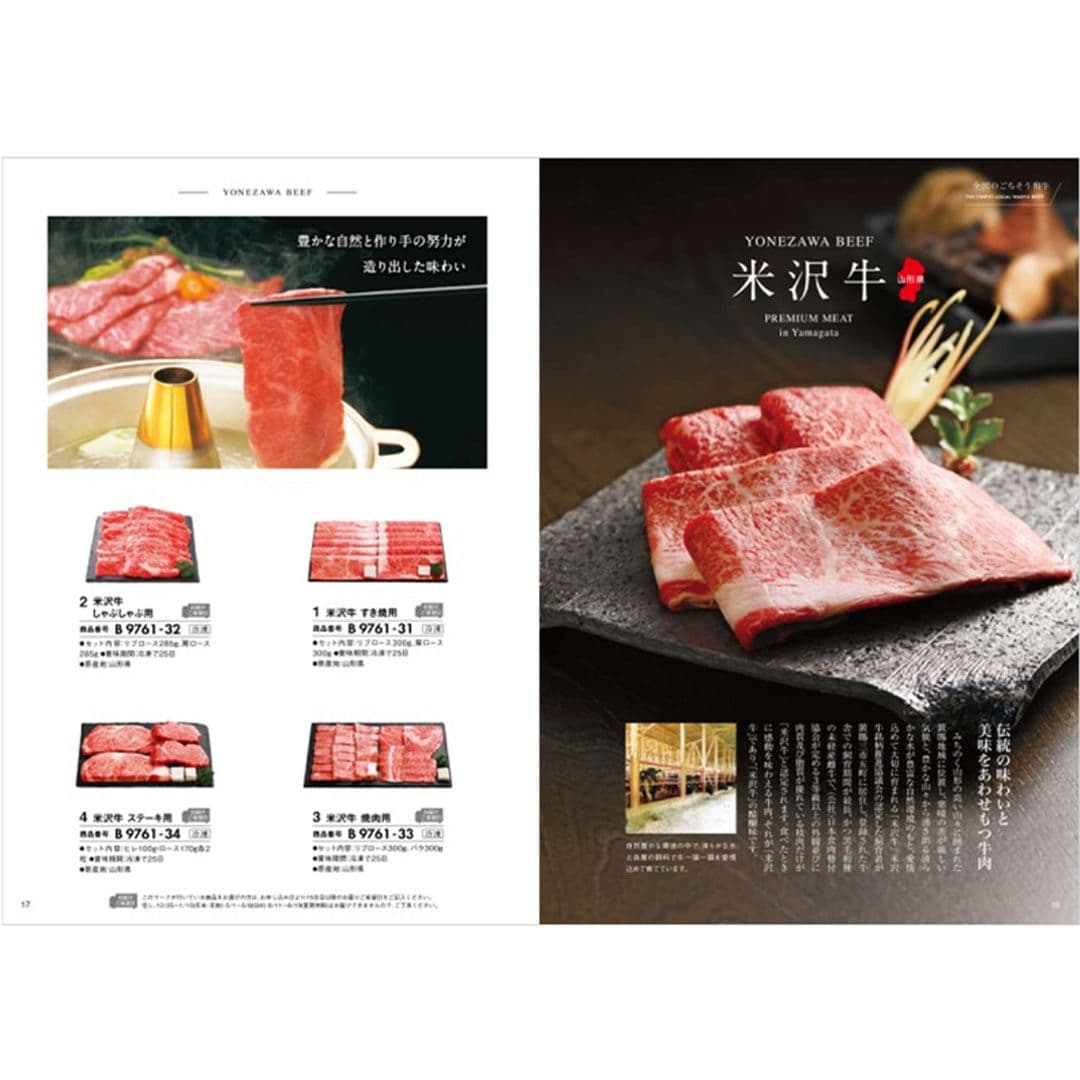 プレミアムな和牛、銘柄豚・地鶏などが多数掲載されているカタログギフト。