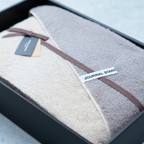 ブランドのネームタグやシックなギフトボックスなど、細部までこだわった上質感のあるタオルです。