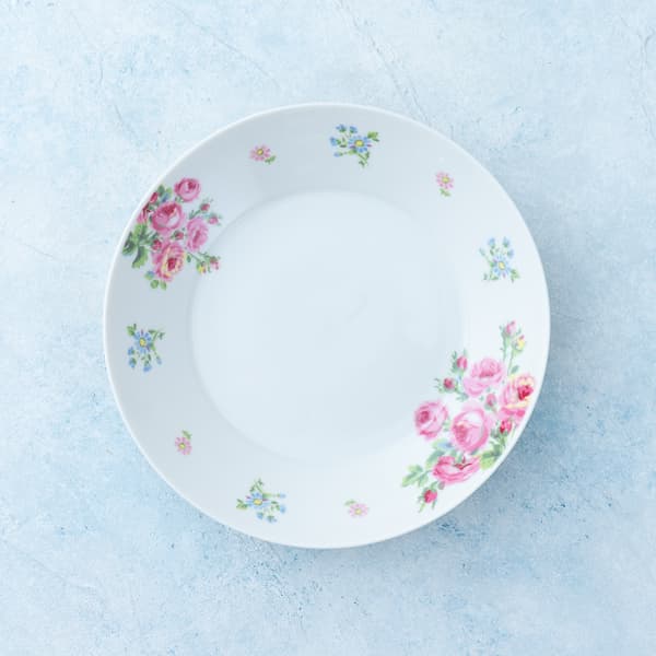 優雅に咲くバラが美しく、やさしい色合いで料理を引き立てながら食卓をぱっと華やかに。