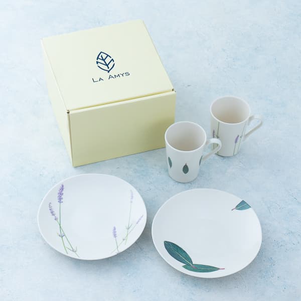 <フェスティビティ> アイボリー&ブルー マグ ペア