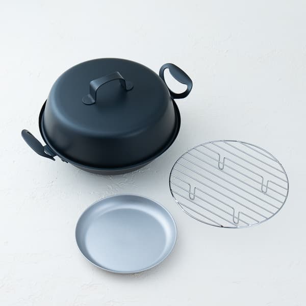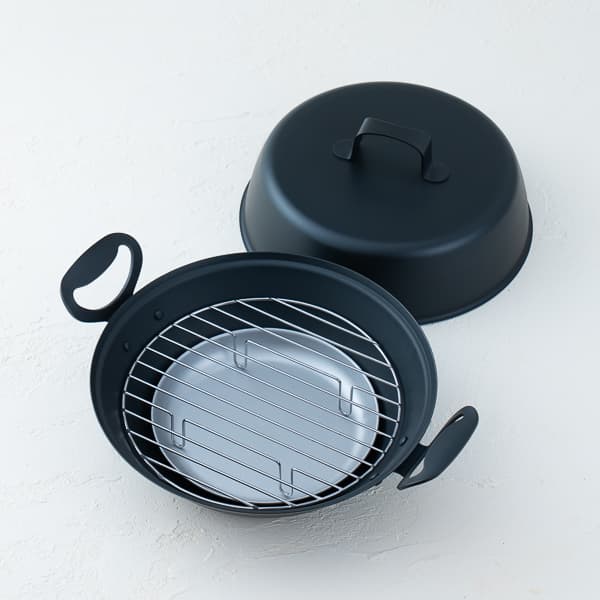 直径27cmの広々設計で、魚やチーズ、ナッツなど多彩な食材を燻製できます。