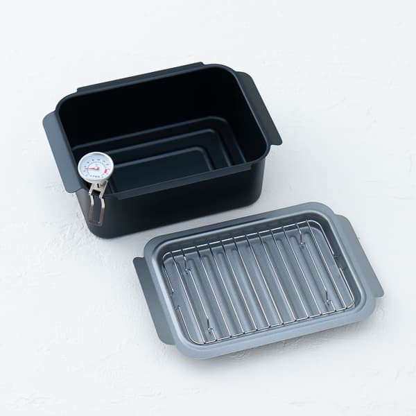 【ポコフリット】IH対応角型揚げ鍋ワイド(温度計・アミ付)