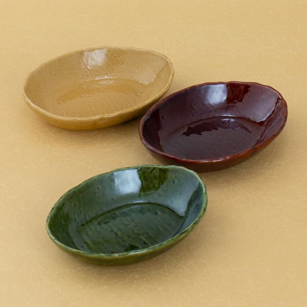 釉薬の風合いが美しい楕円形の多用鉢セット。
